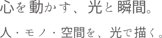 これまでブライダルや人生の節目、心に残る瞬間を中心に、たくさんの人と、たくさんの光に出会ってきました。最近は、お店やブランドの撮影を通して、モノや空間の中に流れる“手の温度”を写すことも増えています。